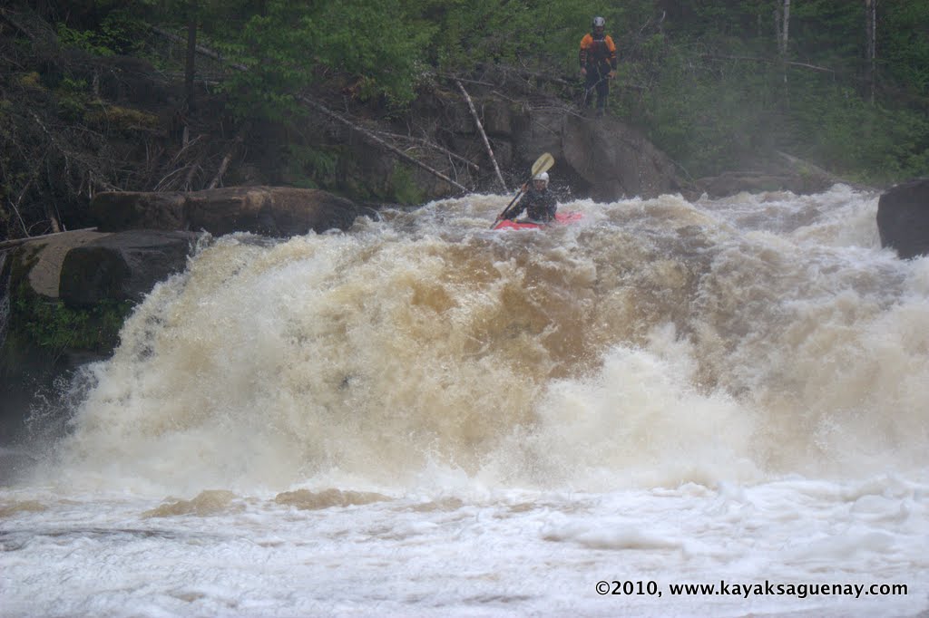 | Pier-Luc Lemieux dans le premier rapide lors de la première descente de la Basse Basse Shipshaw |